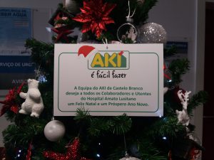 líder de mercado em Portugal, uma equipa do AKI deslocou-se no passado dia 7 de Dezembro ao serviço de Urgência do Hospital Amato Lusitano com o intuito de levar um pouco do espírito natalício a quem mais precisa. Neste contexto ofereceram e montaram não só uma belíssima árvore de natal com todos os acessórios mas também um presépio.